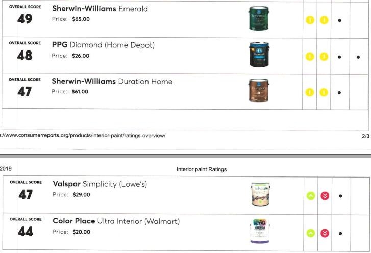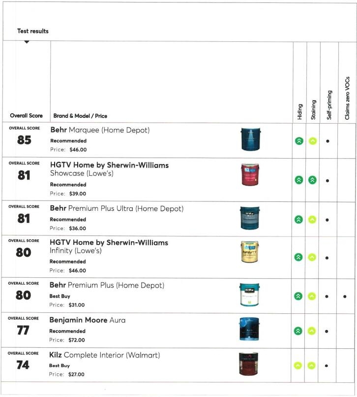 涂界记者注意到,测试包括了Behr、PPG、Sherwin-Williams、Valspar、Benjamin Moore、HGTV Home、Glidden、Kilz等12个品牌旗下的22款涂料产品。测试共采样10项指标,即遮盖力、油着色、光泽度、擦洗、表面光洁度、抗霉、抗粘、抗褪色等,结果等级分为优秀、良好、一般、较差、差。
