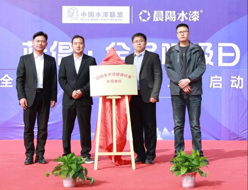 17日上午,在河南鹿邑举行的“全民呼吸日暨全水漆幼儿园健康工程”启动仪式上,在河南鹿邑志成实验学校的师生、家长以及相关行业、协会领导等近500位嘉宾的见证下,房英杰、河南鹿邑志成实验学校校长张冉与晨阳水漆相关领导共同为《晨阳全水漆健康校舍》揭牌。