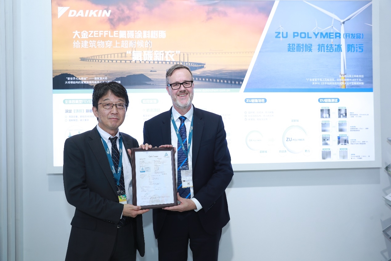 TUV莱茵为大金氟颁发适用于海上风电的防腐涂层材料认证