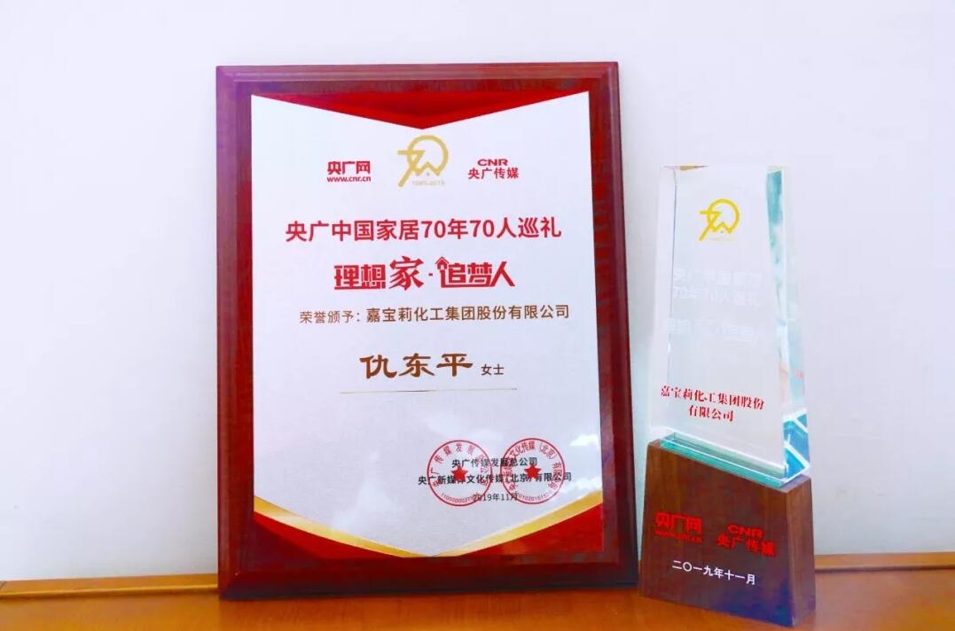 11月19日,由中央人民广播电台、央广传媒、央广网共同组织了发起的“理想家·追梦人”中国家居70年70人巡礼颁奖典礼在广州举行。嘉宝莉集团入选中国家居70年70人巡礼首批企业,嘉宝莉集团董事、品牌总监仇东平入选央广中国家居70年70人巡礼首批企业家。