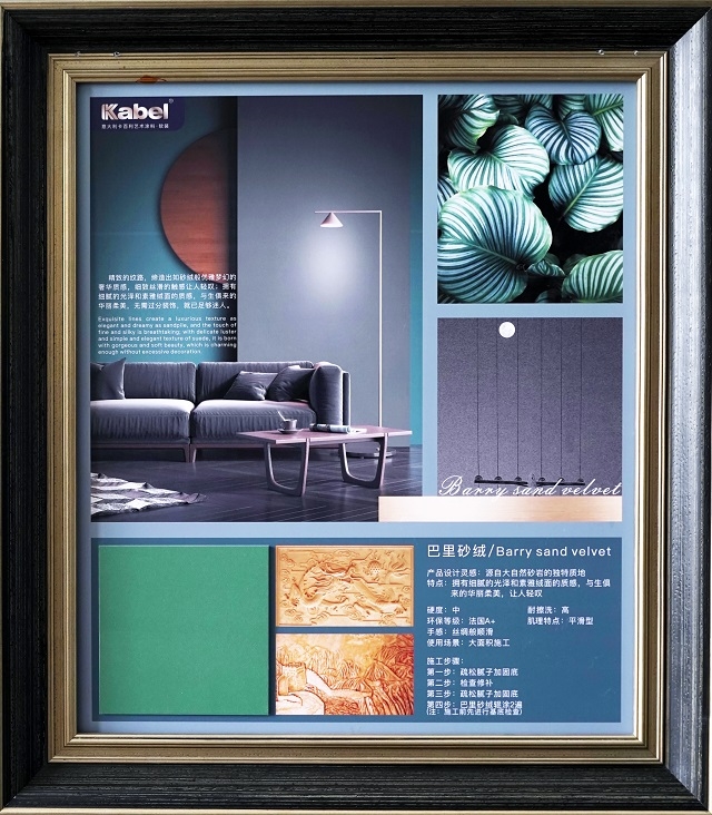 会上,卡百利发布了“纯色天然贝壳片”、 “皮纹雅绒”、“巴里砂绒”三款内墙艺术涂料及内墙/外墙工程涂料系列产品,并配有多款综合样板册、色卡及宣传手册等推广工具。据悉,卡百利2020年涂料新品,汲取经典元素,融合当下潮流莫兰迪色系,契合多种家居场景,并严格把控每一道工序,匠心呈现每一款新品。
