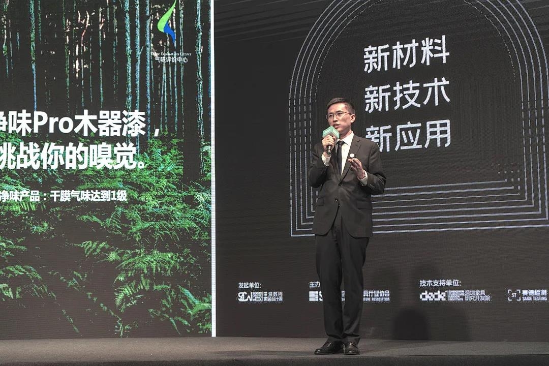宣伟工业木器涂料亚太区市场总监张忠明应邀在创技术优选库专题发布会上发表《净味品质 挑战你的嗅觉》的主题演讲,从嗅觉的科学角度与现场嘉宾分享了气味与嗅觉的关系,气味带来的感受与挑战,探讨如何通过气味打造嗅觉感官品牌,开辟新的竞争赛道,让现场嘉宾受益匪浅。