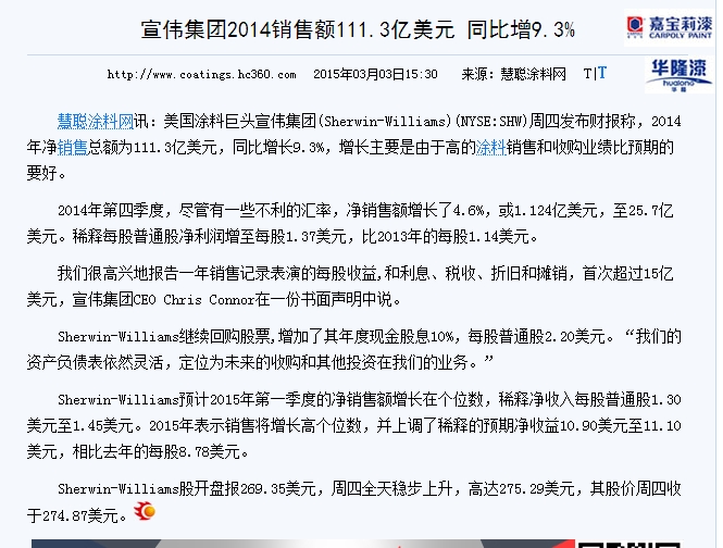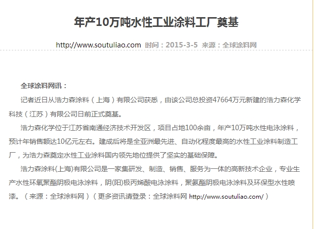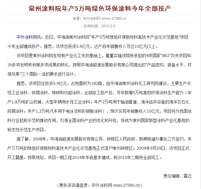 近来,慧聪涂料网、联众涂料网、中外涂料网、全球涂料网、涂料经等网站,以及“涂料工业”官方微信在转载中国涂界网原创文章时,来源并未标明“中国涂界网”,此行为侵犯了本网版权,为维护合法版权,特此发布版权声明,希望各网站和微信尊重本网知识产权。