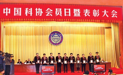 12月14日,中国科协会员日暨“全国优秀科技工作者”颁奖大会在北京人民大会堂召开。中共中央政治局委员、全国人大常委会副委员长王兆国,全国人大常委会副委员长、中国科协主席韩启德,全国政协副主席、科技部部长万钢出席大会。中国科协常务副主席、书记处第一书记邓楠主持颁奖大会。