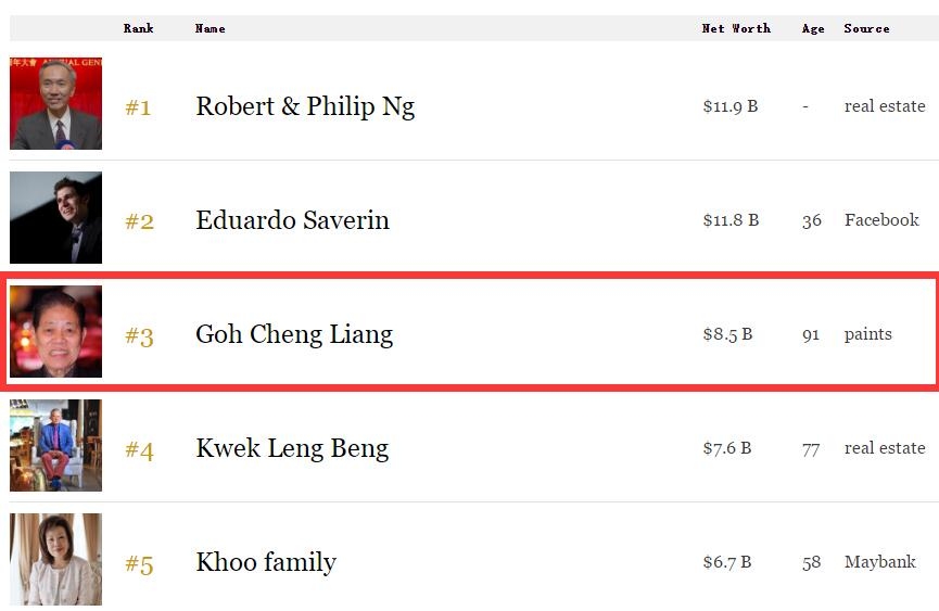 摘要:7月25日,福布斯发布了2018新加坡富豪榜,涂料大王吴清亮(Goh Cheng Liang)以85亿美元身价位居榜单第3位。涂界记者注意到,吴清亮的财富较往年增加了7亿美元。