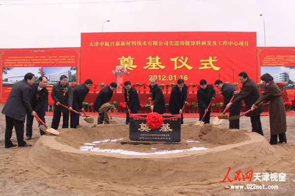 2012年1月16日,天津中航百慕新材料技术有限公司奠基仪式在天津举行。图为奠基仪式现场