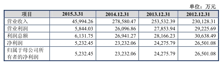 资料显示,嘉宝莉2012-2015年3月末实现营业收入分别为228,556.47万元、251,677.65万元、276,651.23万元及45,994.26万元,2013年及2014年营业收入增长率分别为10.17%及9.88%。