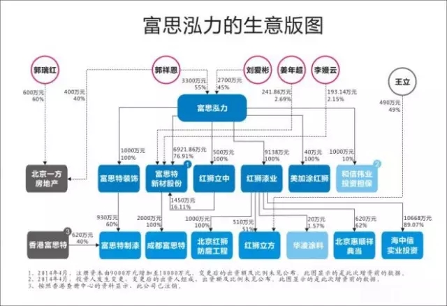 以此为契机,富思特开始描绘它更大的蓝图。几乎在洽购红狮漆业的同时,由郭祥恩主导的北京富思泓力投资有限责任公司在北京成立,开始了它“跨地区、跨行业的大型企业集团”的布局。