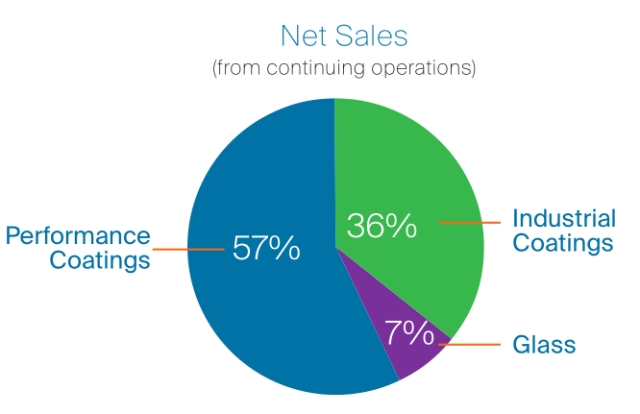 始建于1883年的PPG,其总部设在美国匹兹堡市。截止2016年2月18日,PPG在全球近70多个国家设有156个生产基地(美国42个、其他美洲地区23个、EMEA地区64个、亚太地区27个),2015年全球净销售额153.3亿美元,共有46600名员工。如今,PPG在涂料很多细分领域已居世界领先地位,其中汽车原产漆、汽车修补漆排第一,船漆、工业防护漆是第二位,但玻璃产品只是大范围参与而已。