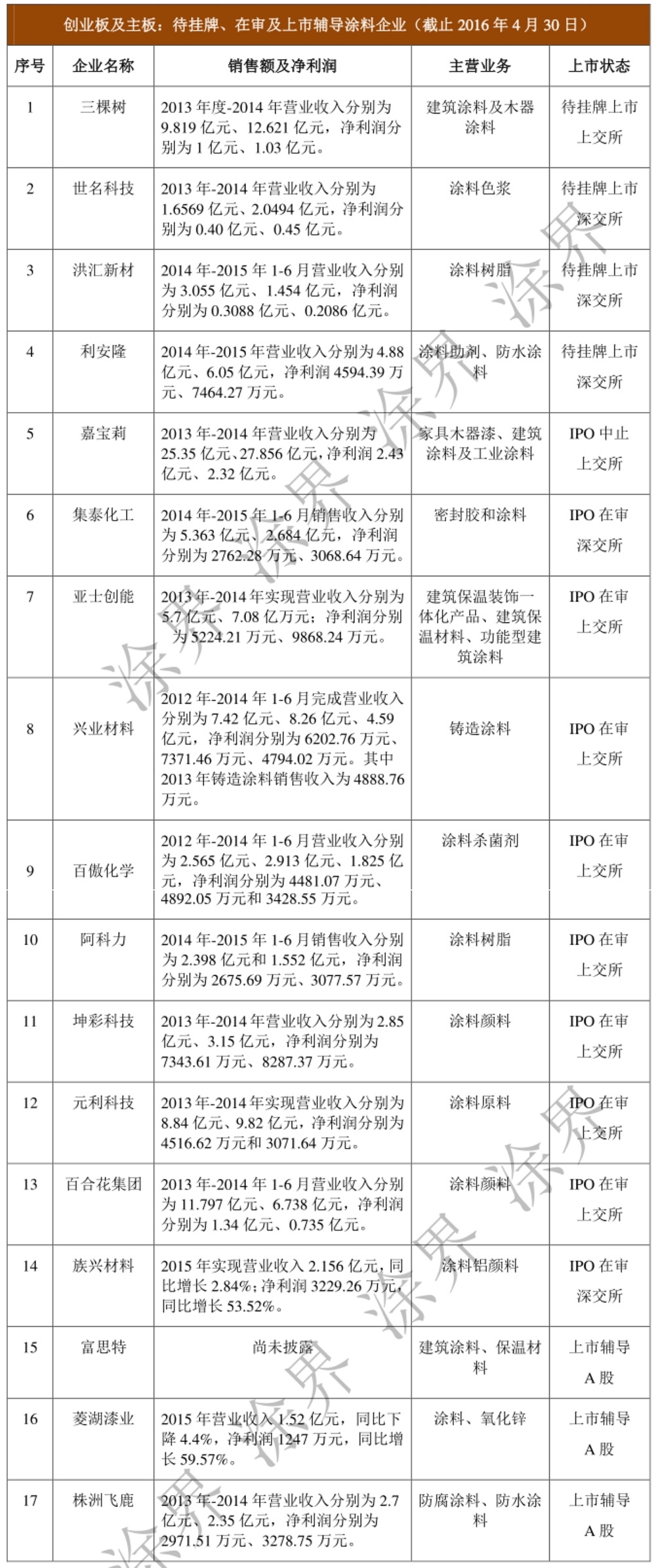 3、A股待挂牌上市、在审及上市辅导涂料企业(17家)