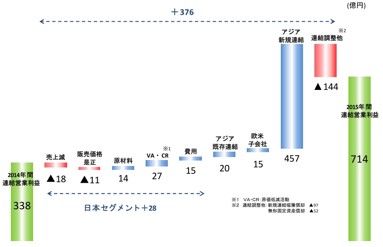 如今“生存•挑战”计划的第一、第二阶段已经完成,两个阶段在事业的收益性、效率性方面取得了“一定的成果”。其中在销售业绩方面,经历了稳中有升的过程,年销售额从2009财年的2165亿日元到2014财年的2606亿日元,营业利润从2009财年的99亿日元攀升至2014财年的338亿日元。