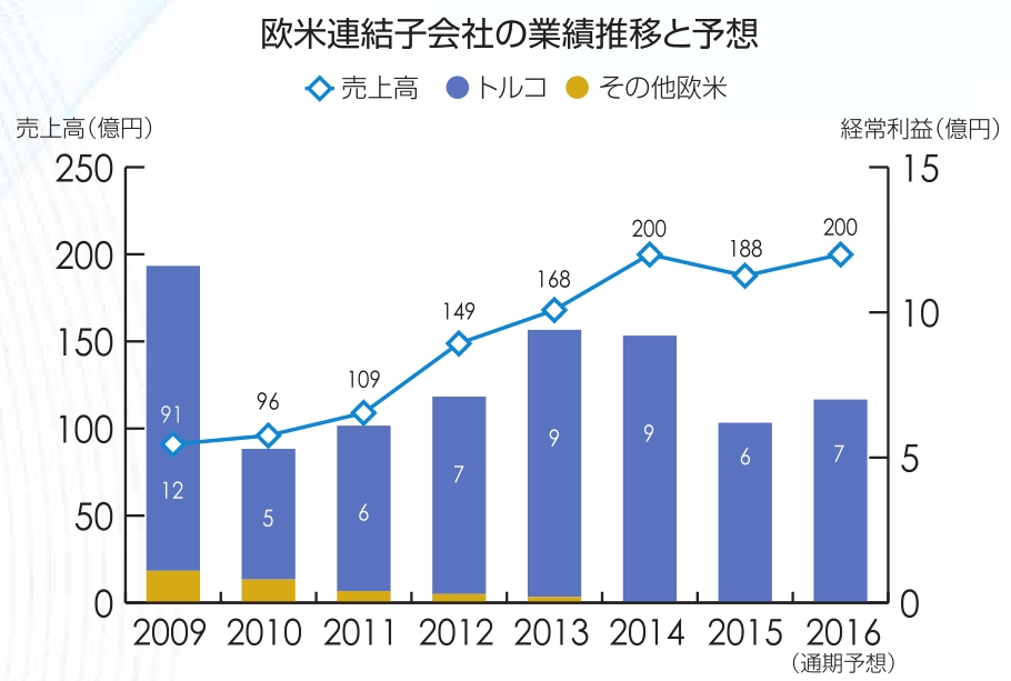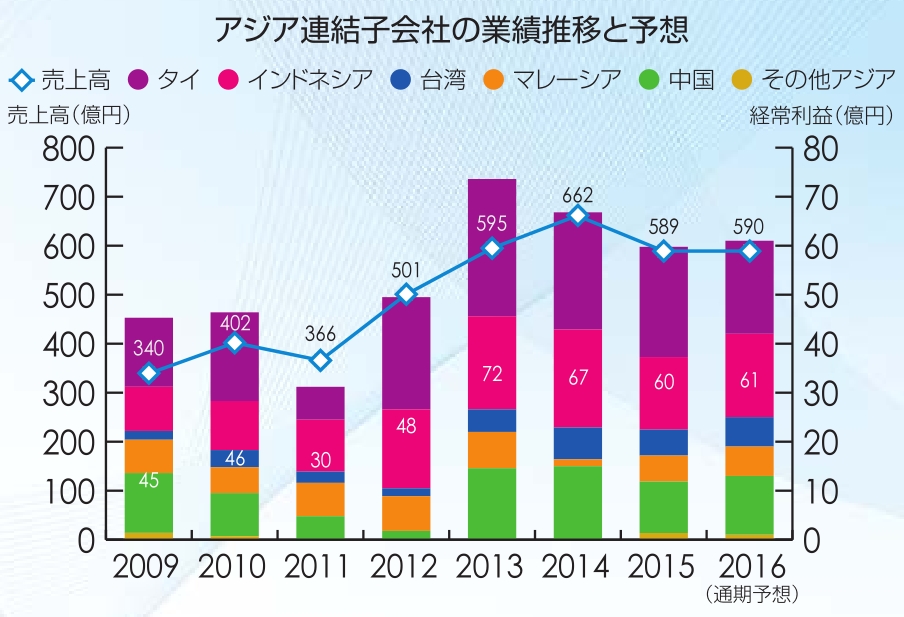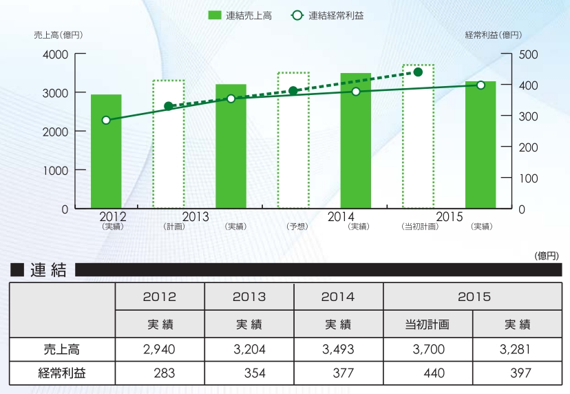关西涂料表示,由于经济增速暂时放缓和新兴经济体的外币折算的影响显著,最终全年的业绩没有实现最初的计划。最初预计2016财年销售额为3700亿日元,最终销售额为3281亿日元。(如下图)