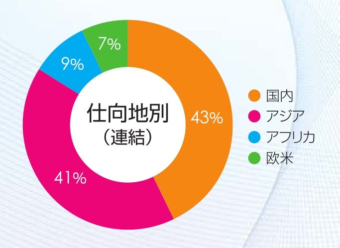 按地理区域来看,日本地区占43%,亚洲地区占比41%,非洲地区占9%,欧美地区占7%。