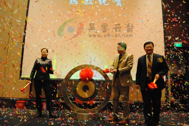 攀枝花市委常委艾磊(右一)、中涂协孙莲英会长(左一)与董事长童晓宇(右二)为昊客云台开锣
