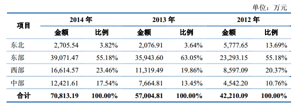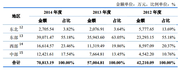 按产品销售区域划分,发行人报告期内主营业务收入分类情况如下所示: