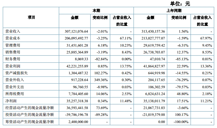 吉人高新2014年营业收入3.07亿元 同比下滑2.01%