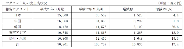 摘要:中国涂料株式会社(CMP)5月8日发布财报,2015财年实现营业收入为1067.37亿日元,约合人民币55.066亿元,同比增长17.4%;纯利润为47.48亿日元,同比增长45.2%。2015财年中国区实现营业收入为343.56亿日元,约合人民币17.724亿元,同比增长31.8%。