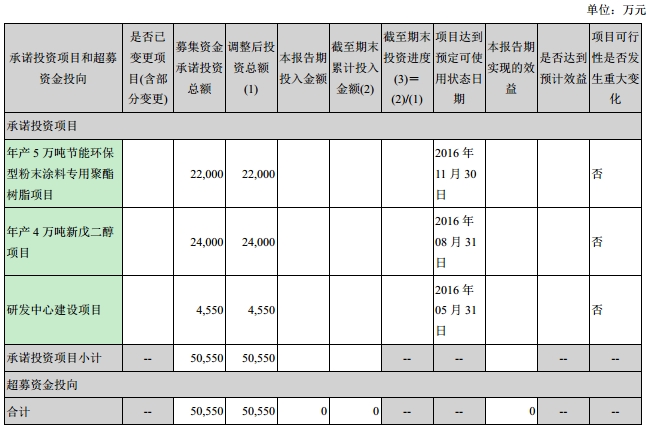 报告期初,公司自有资金收购黄山永佳三利科技有限公司96.06%股权,现已更名为黄山神剑新材料有限公司。黄山神剑现有年产1.5万吨聚酯树脂的生产能力,公司收购完成黄山神剑后,对聚酯树脂生产规划做了战略调整,一方面,为避免多个聚酯树脂生产基地所必然增加的管理问题,更便于公司对聚酯树脂生产的管理和协调,提升管理效率;另一方面,通过总部与黄山神剑协同管理,划分聚酯树脂不同型号之间的生产分工,减少同一生产线进行多型号生产过程中所必须的清洗、换料等程序,节约成本、进一步提高产品质量并提高生产效率。同时加大了对黄山神剑的投入,把原募集资金项目——年产5万吨聚酯树脂项目实施地点变更为黄山神剑建设,努力将黄山神剑打造成为公司总部之外的另一个聚酯树脂生产基地。
