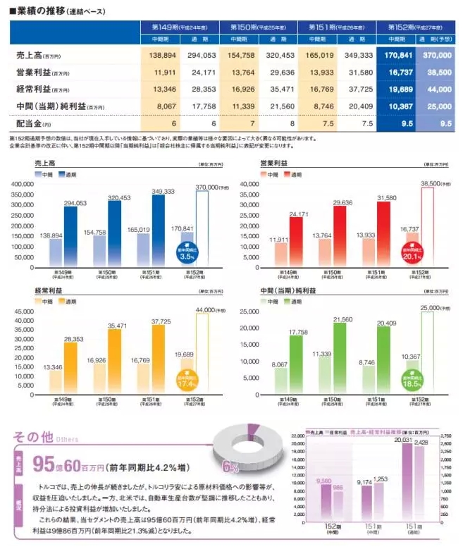 2015上半财年,日本地区营业收入763.74亿日元,同比减少0.3%;印度地区营业收入364.08亿日元,同比增长8.6%;亚洲区域营业收入175.66亿日元,同期增长3.9%;非洲地区营业收入175.66亿日元,同比增长3.9%;其他地区营业收入95.60亿日元,同比增长4.2%。
