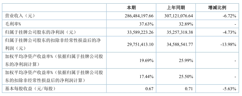 2015年度,公司实现营业收入28,648.42万元,受经济宏观环境的影响,较上年略有下降,同比下降6.72%;公司在2015年在品牌宣传推广和新产品研发方面加大了投入力度,实现归属于挂牌公司股东的净利润3358.92万元,同比下降4.73%。