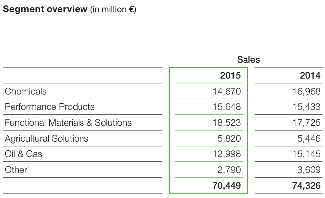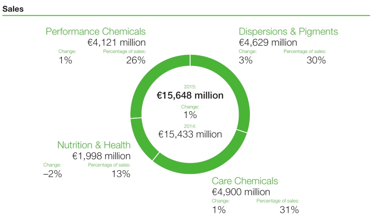 3月1日,巴斯夫(BASF)发布2015年度报告,全年销售额下滑5%,为704亿欧元。息税前收益(EBIT)为62亿欧元,较前一年相比下降14亿欧元。