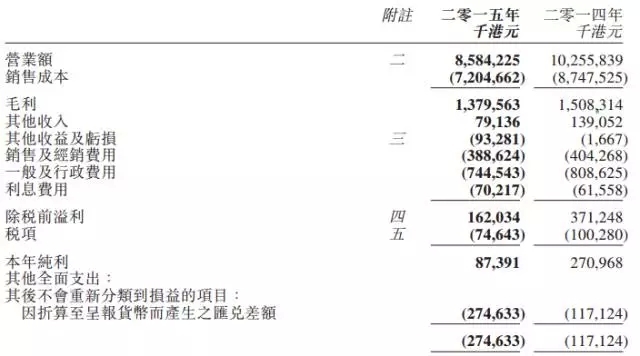 但由于产品销售单价普遍下调,令销售额按年下跌16%至85.842亿港元。而股东应占纯利则按年下跌79%至4784.70万港元,主要受累于溶剂业务经营溢利下跌及润滑油业务亏损大幅扩大,加上人民币汇率大幅波动,令集团产生5120.80万港元汇兑亏损所致。另外,受惠于集团审慎的业务拓展方针,推出一系列措施对应收账风险及资本性投资加以控制,成功令净借贷比率由2014年同期的58%降低至54%。经慎重评估后,董事会议决不派发期末股息,但适逢集团创办45周年,建议派发特别股息每股4.5港仙以回馈股东。