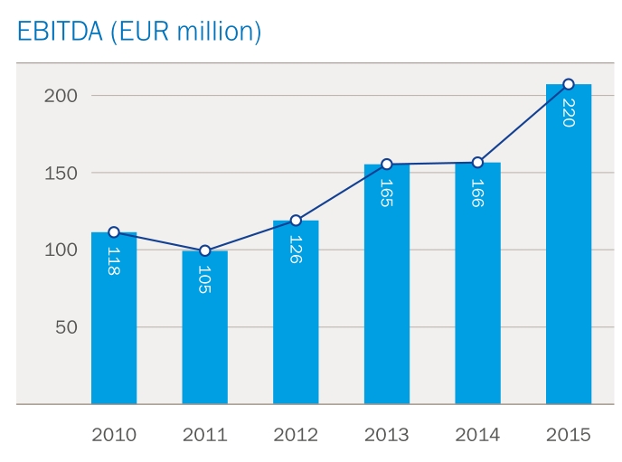 海虹老人的税息折旧及摊销前利润为2.2亿欧元,达到了集团历史的最高峰且同比增长24.55%,这本身就是创纪录的一年。其部分原因是由于有利的原材料价格上涨,但也归因于集团在过去几年里已采取的效率提高措施。