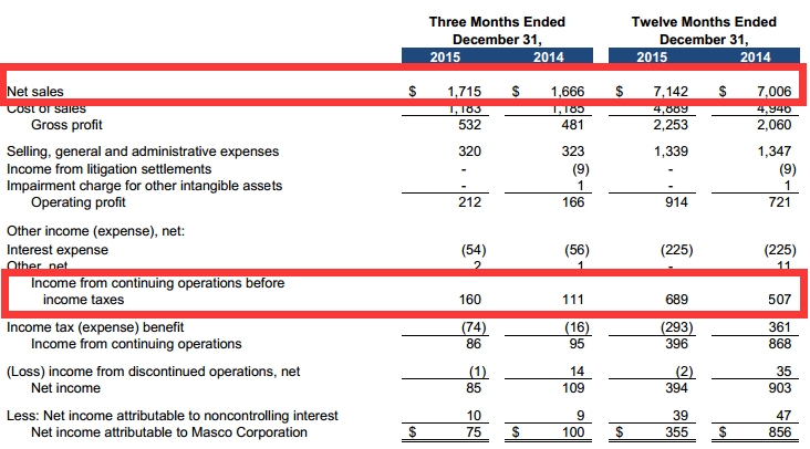 3月16日,马斯科(Masco)发布2015年度报告,公司实现净销售额71.42亿美元,同比增长2%;净利润为6.89亿美元,同比增长26.42%。以当地货币来计算,北美销售增长了6%,国际销售增加了5%。