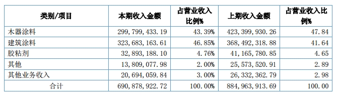 报告称,销售收入的下滑,主要是年度内受经济大环境影响,房地产和涂料市场较为低迷,建筑装饰市场需求回落。另外公司针对一些亏损产品和应收账款账期较长的直销客户等进行整合,导致部份产品销售下滑、客户减少。