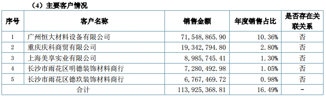 美涂士2015年前五大客户销售情况