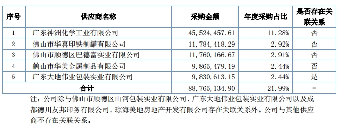 美涂士2015年前五大供应商销售情况