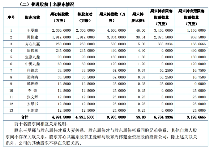 美涂士普通股前十名股东情况