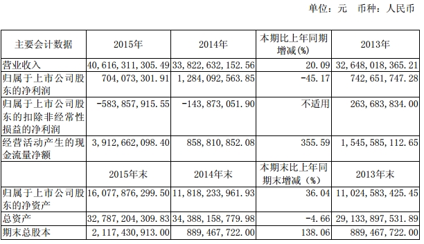 4月26日,双钱股份(600623)发布2015年度报告,报告期内实现营业收入为406.16亿元,同比增长20.09%;净利润为7.041亿元,同比下降45.17%。