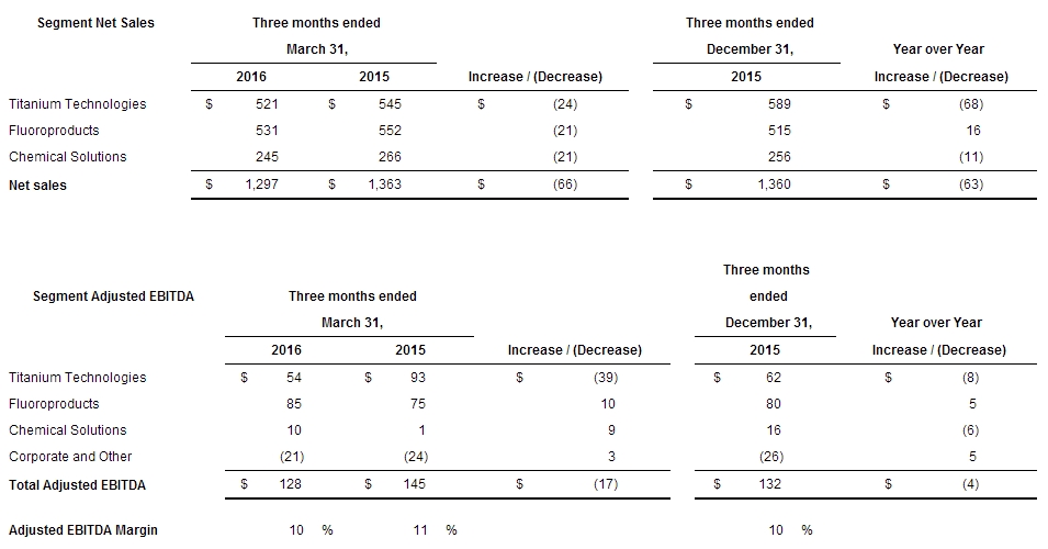 科慕2016年Q1销售额为13亿美元 钛白业务销售额5.21亿美元