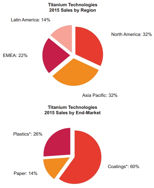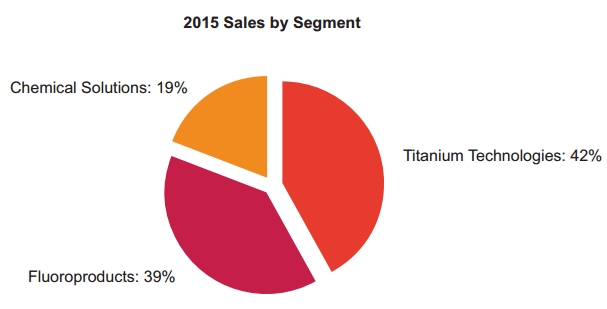 财报显示,钛白科技事业部2015年度销售额为23.92亿美元,同比下降了19%;调整后EBITDA为3.26亿美元,同比下降了121.7 %。