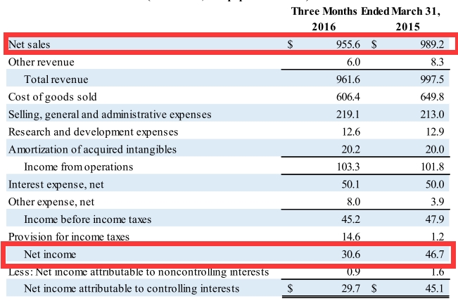 艾仕得2016年Q1净销售额9.56亿美元 净利润同比下降52.61%