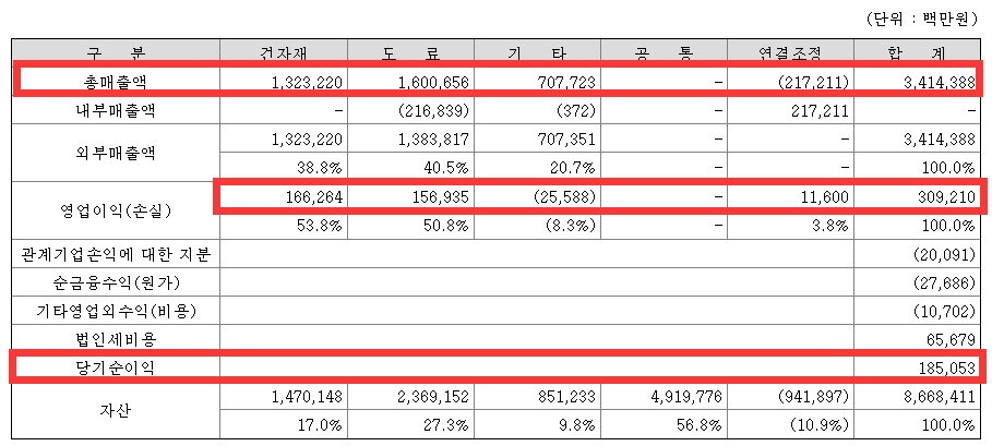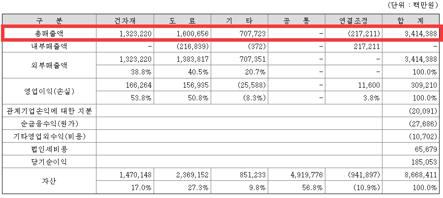 报告显示,2015年KCC集团建材业务销售额为13232.20亿韩元;涂料业务销售额为16006.56亿韩元,折合人民币88.036亿元(14.406亿美元),同比下降3.77%);其他业务销售额为7077.23亿韩元。