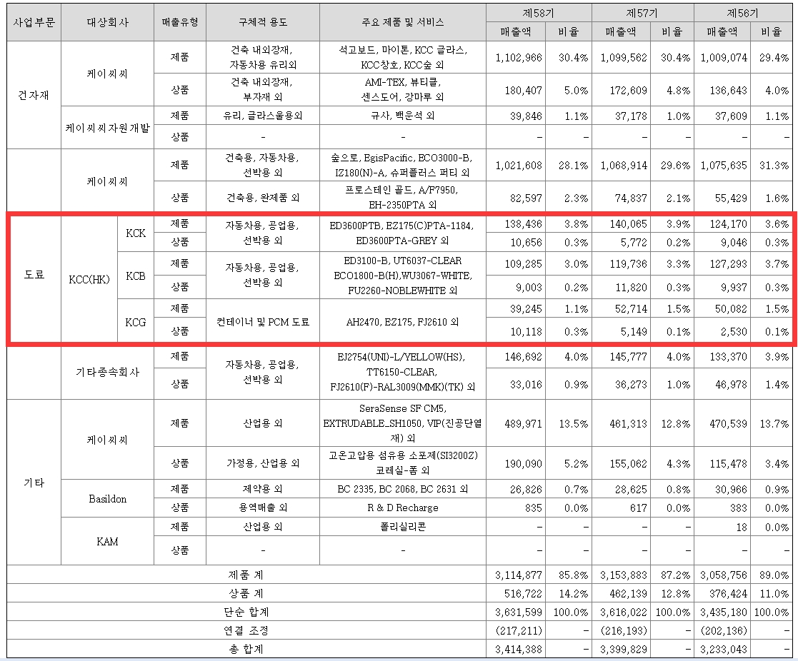 韩国金刚化工(KCC),原金刚石板瓦工业株式会社,成立于1958年8月12日;1973年6月29日,金刚公司股份上市;1985年10月22日,高丽化学股份上市;2000年4月,金刚株式会社与高丽化学株式会社合并,更名为金刚高丽化学株式会社。
