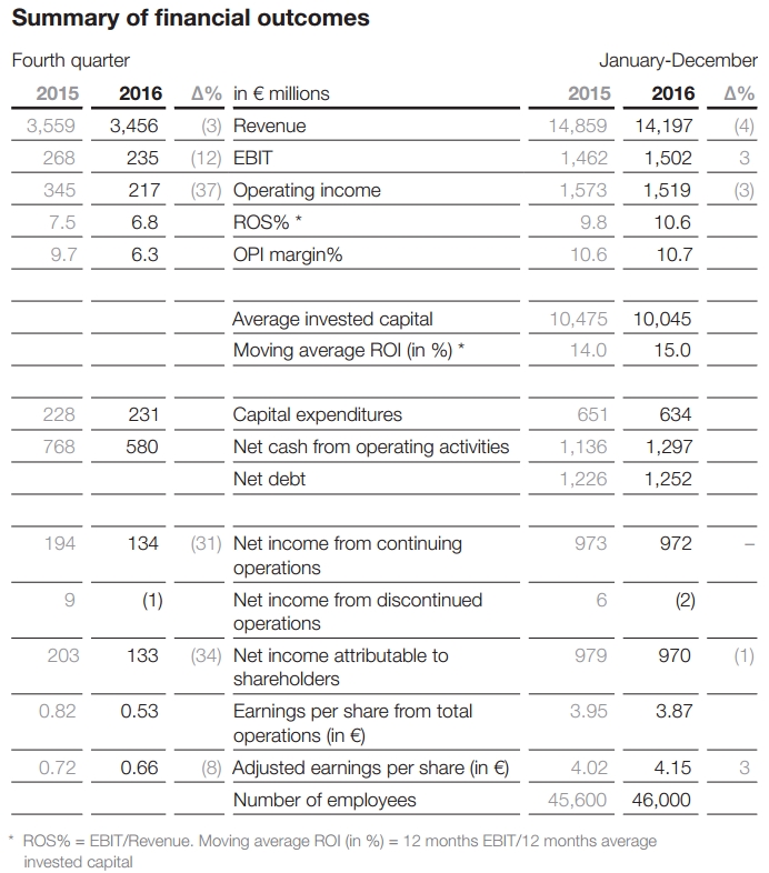 TonBüchner说:“在这一年中,我们引入了更多创新的新产品,推进了我们的数字议程,并在可持续发展方面迈出了重要的一步,通过我们的环保高级解决方案获得了更高的收入。我们的人类城市计划-我们为社会和社会做的一切-对全世界数百万人产生了积极的影响。我们现在是一个更强大,更敏捷的公司,有优秀的品牌,不断增长的全球存在和稳固的财务和运营基础。我们维持2016-2018年的财务指导。”
