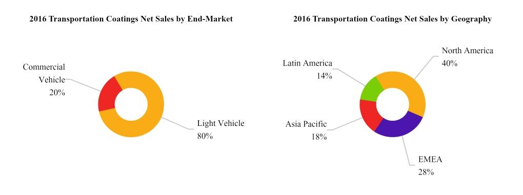 艾仕得交通运输涂料部门,2016财年净销售额为17亿美元,同比下降1.9%。该部门为轻型商用车的OEM提供先进的涂层技术。其终端市场为轻型车、商用车。