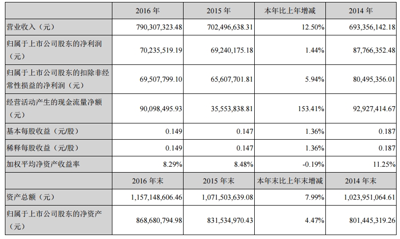 金力泰2016年营业收入7.9亿元,净利润同比增长1.44%