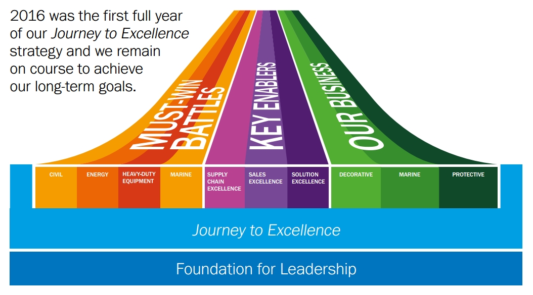 4月5日,海虹老人集团(Hempel Group)公布了2016年度报告,全年实现营业收入为14.24亿欧元,约15.986亿美元,同比下降4.5%。息税折旧摊销前(EBITDA)为1.99亿欧元,同比下降14.55%。运营利润为1.30亿欧元,同比下降17.72%。净利润为0.47亿欧元,同比下降56.48%。员工为5787人。