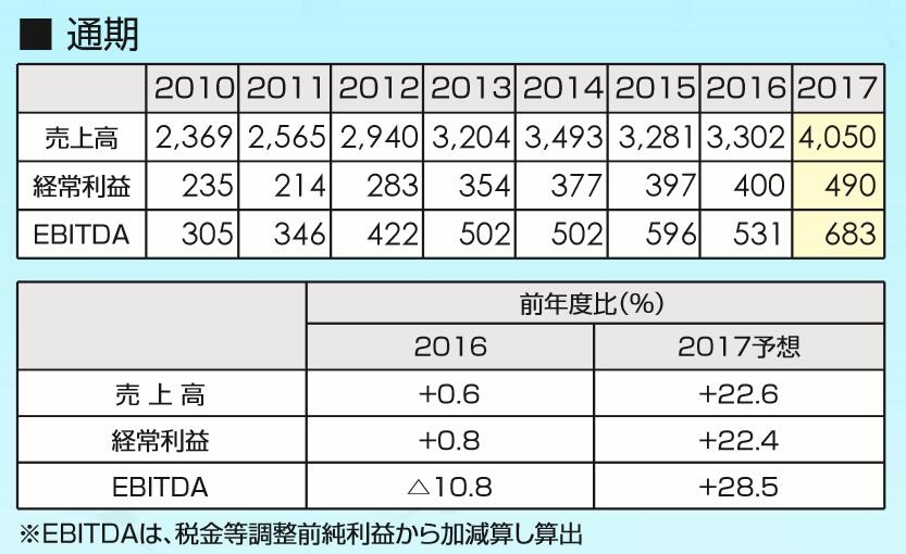5月22日,关西涂料株式会社发布了2016年度决算说明会。2017财年实现销售额为3302.35亿日元,约合29.564亿美元,同比增长0.6%;经常利润为400亿日元,同比增长0.8%;EBITDA为531亿日元,同比下降10.8%;净利润为241.68亿日元,同比下降14.7%。