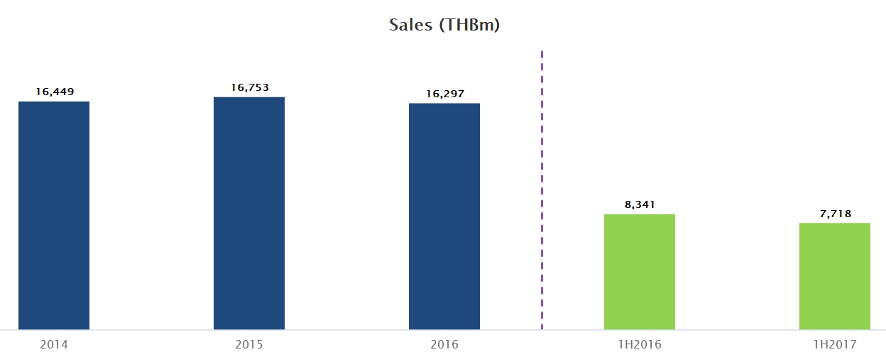 10月9日,TOA发布业绩报告显示,截至2017年6月30日止六个月,销售收入为77.179亿泰铢,同比下降7.5%。减少主要是由于装饰漆产品的销售额下降,由于优质产品和中型产品的销售量由于2016年经济增长放缓而减少,销售收入下降非装饰漆产品。分销渠道销售收入下降主要是由于零售经销商的销售收入减少,部分被其他渠道销售收入增加所抵销,主要是由于使用我们的产品的项目数量较多,以及现代贸易销售收入略有增加。