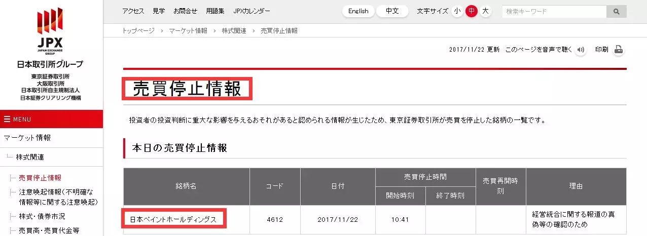 日本立邦股票停牌