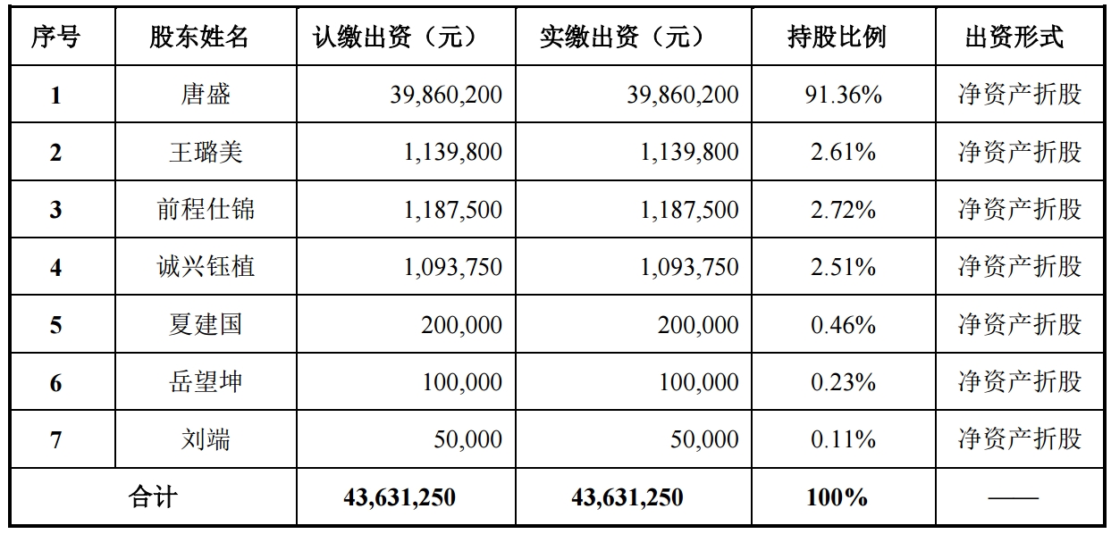 公开披露的资料显示,仕全兴董事长唐盛与母亲王璐美两人合计直接持有公司93.97%股份,合计控制的表决权占股东大会表决权99.2%,为共同实际控制人。