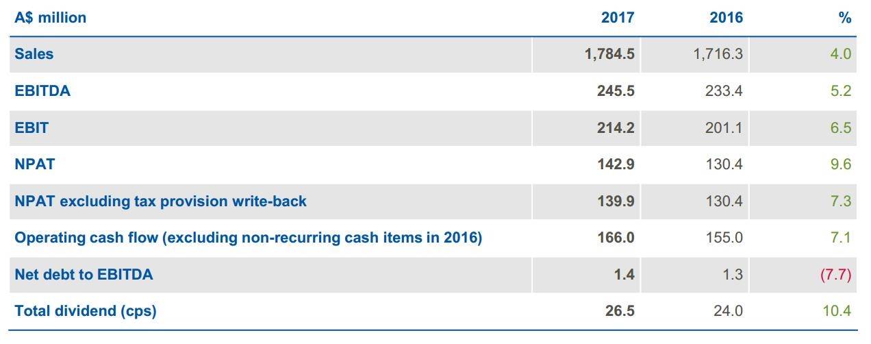 近日,多乐士集团(Dulux Group)发布2017财年报告,实现销售收入为17.845亿美元,同比增长4.0%;息税前利润(EBIT)为2.142亿美元,同比增长6.5%;税后净利润(NPAT)为1.429亿美元,同比增长9.6%。