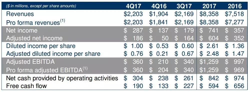 2月23日,亨斯迈(Huntsman)公布了2017年度财报。全年实现销售额为83.58亿美元,同比增长10.05%;净利润为7.41亿美元,同比增长51.82%;调整后的EBITDA为12.59亿美元,同比增长47.90%。经营活动提供的现金净额为8.42亿美元,上年为9.74亿美元。产生自由现金流5.94亿美元,上年为6.56亿美元。