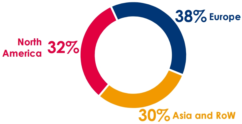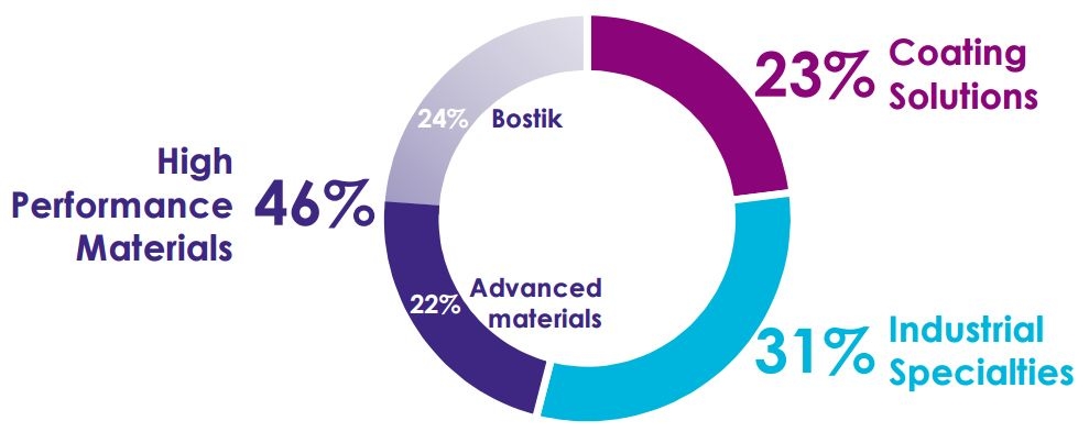 报告显示,从业务板块来看,高性能材料业务占比46%,涂料解决方案占比23%,工业特种产品业务占比31%;从区域来看,欧洲地区占比38%,北美地区占比32%,亚洲和其他地区占比30%。