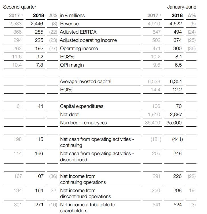 今年上半年实现调整后经营利润为3.74亿欧元,同比下降25%;经营利润为3.00亿欧元,同比下降36%。公司表示,调整后的营业利润受到不利货币、原材料成本上涨和产量下降的影响,部分由定价举措和成本节约补偿。